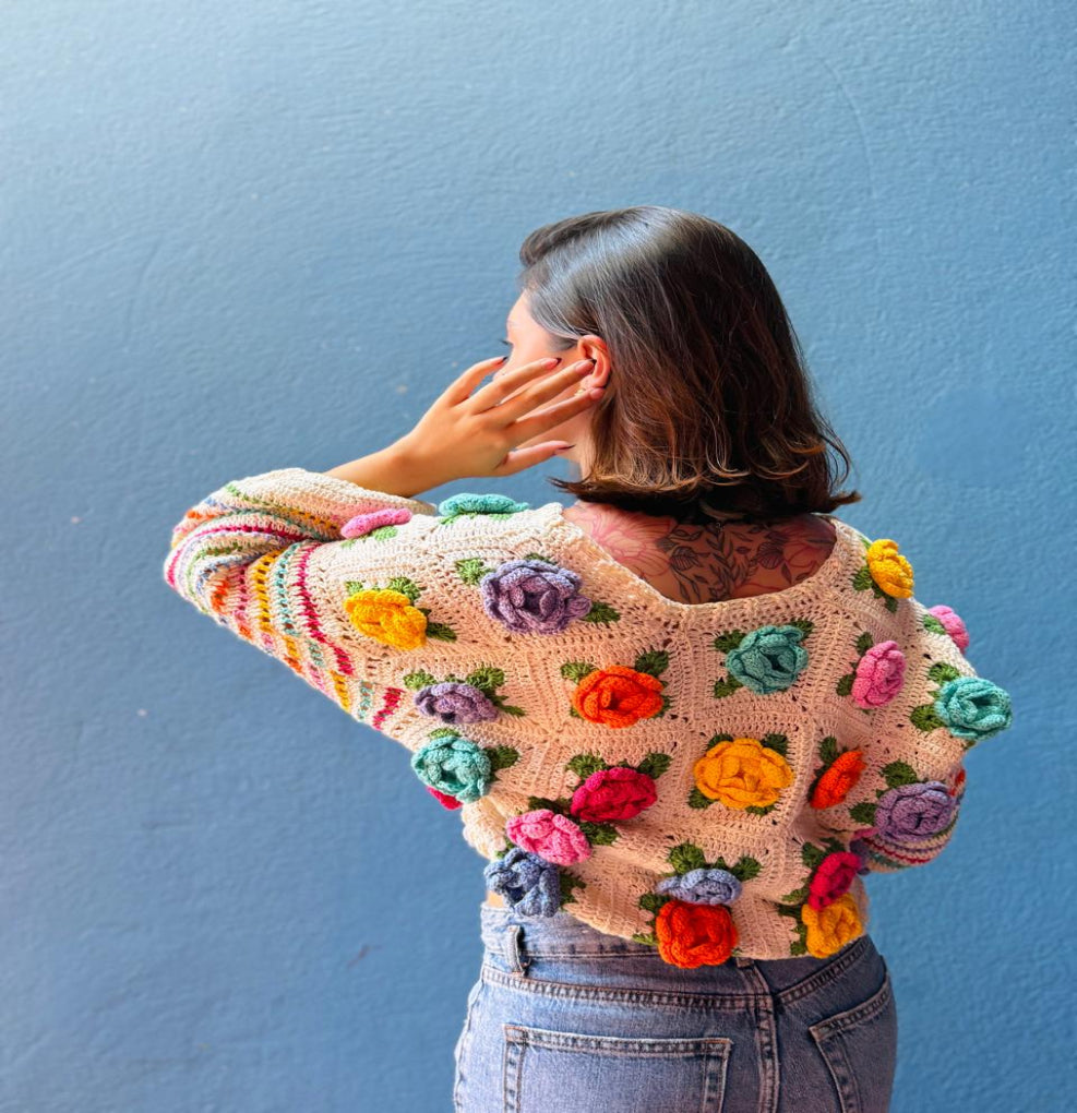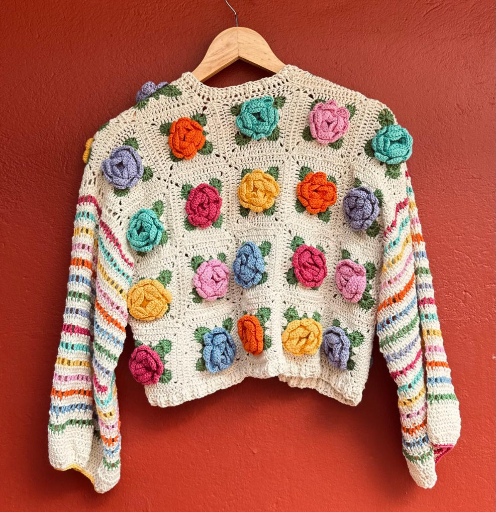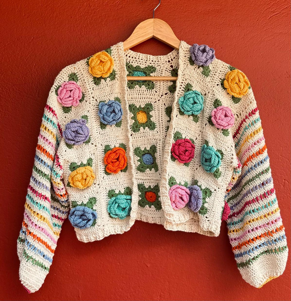 Una pieza tejida a mano que mezcla color, textura y un encanto imposible de ignorar.